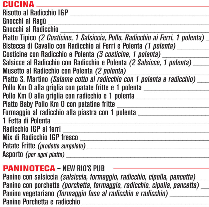 In tutte le giornate sarà in funzione la paninoteca “NEW RIO’S PUB” con gustosi panini farciti.